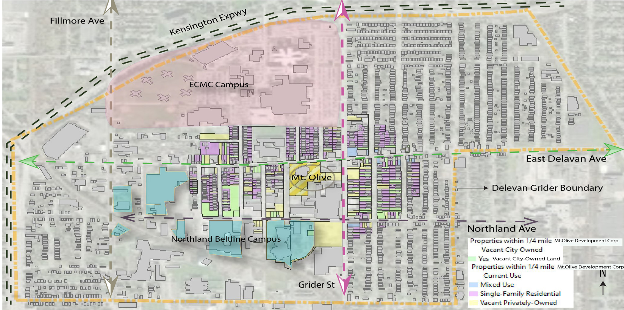 Hallmark Planning & Development (along with Jacques Planning & Consulting Services) developed a neighborhood plan that helped Mt. Olive Baptist Church secure funding for the $28 million Mt. Olive Senior Manor. The plan combined community engagement, demographic and market research, and an analysis of neighborhood assets, challenges, and opportunities across the Delavan-Grider community. Hallmark facilitated resident meetings, surveys, and interactive planning exercises that surfaced core priorities including affordable senior housing, public safety, workforce training, economic development, and health equity. The resulting East Delavan Strategic Plan provided a roadmap for strengthening the surrounding neighborhood and became a key supporting document for the development of the 65-unit senior housing project on the Mt. Olive campus as well as future housing projects for the church.
